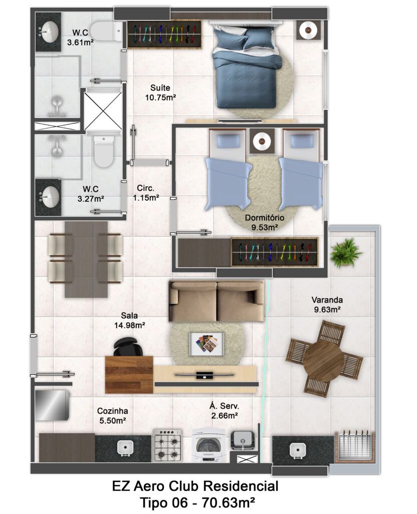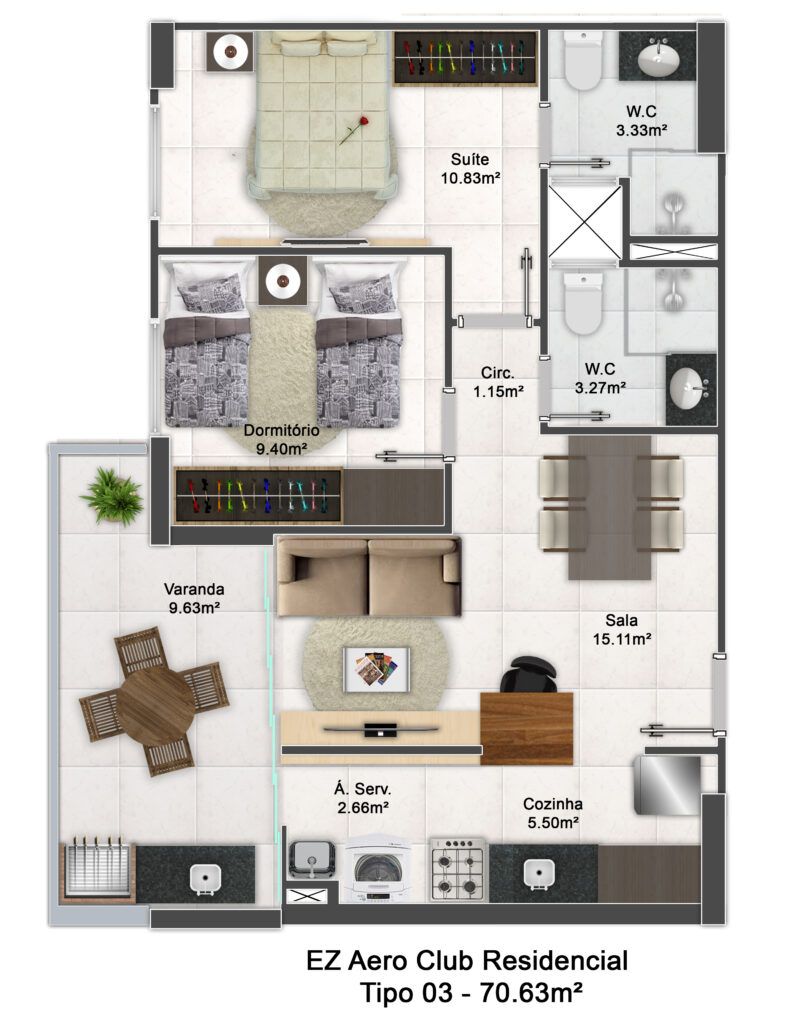 70.63m² de área útil